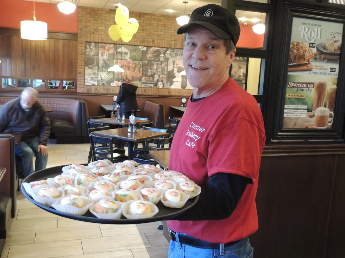 Corbin Park Corner Bakery Café celebrated the brands 34th Birthday, Thursday, April 10th. We welcomed the first 34 guests by giving them a Smiley Mug, and free coffee or tea for a year. All the customers, all day long helped us celebrate by receiving a free mini birthday bundt cake.
